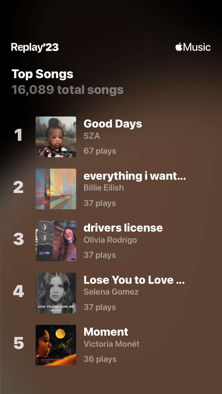 I feel like the Top Songs are the same as last year (and maybe the year before)…